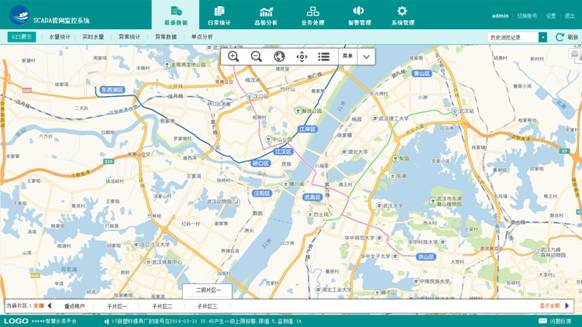 ♦ 結(jié)合GIS地理信息系統(tǒng),實時顯示流量壓力分析和水質(zhì)分析功能