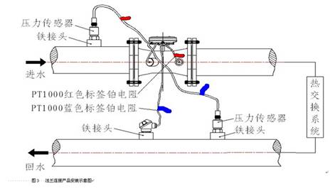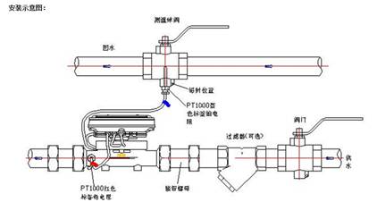 一對溫度傳感器分別安裝在供熱進、出水管道上。流量計發(fā)出流量信號, 溫度傳感器測出進水和出水溫度信號。 積算儀采集到流量和溫度信號利用積算公式算出獲得的熱量,再利用自動累加的方法隨時把用戶的消費熱量加在一起,例如累計滿一個月就是當月消費的熱量總量。